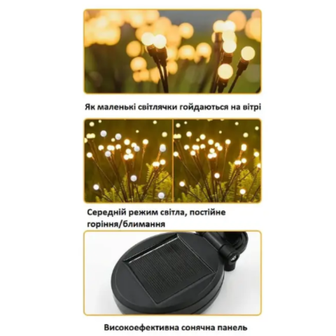 Нові модернізовані зовнішні ліхтарі-світлячки на сонячній енергії - погойдуються на вітрі.